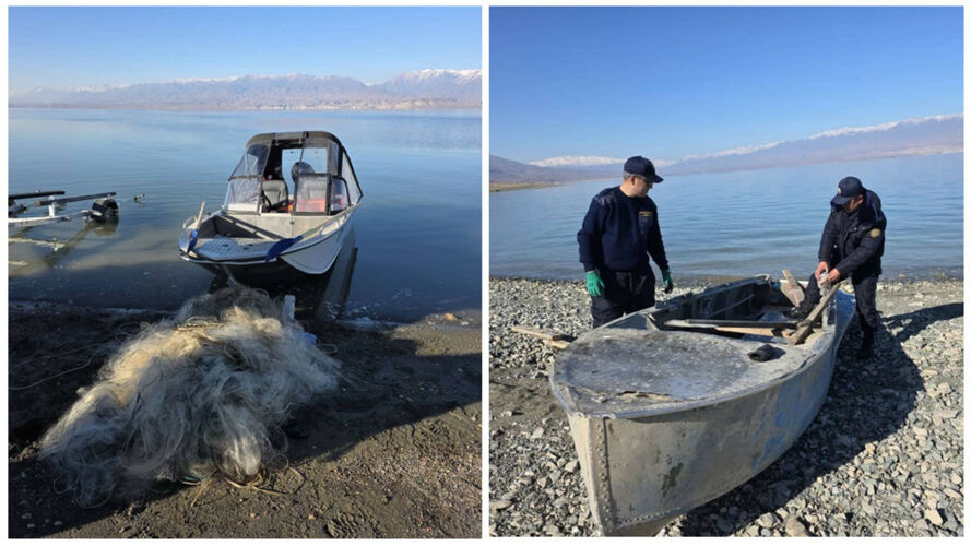 На берегу водохранилища обнаружили три лодки, в которых тоже были рыболовные снасти и ящики для рыбы. Владельцы двух лодок установлены. Их оштрафовали на 11 тысяч сомов согласно статье 267 Кодекса о правонарушениях (Использование при рыболовстве синтетических рыболовных сетей, электроловильных систем).