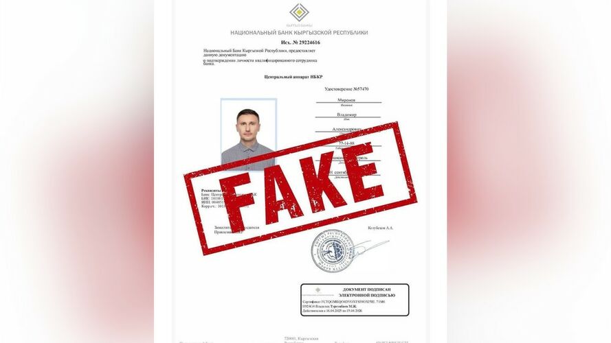 По его данным, для убедительности злоумышленники демонстрируют поддельные документы с логотипом Нацбанка и поддельной подписью заместителя председателя НБ КР.
