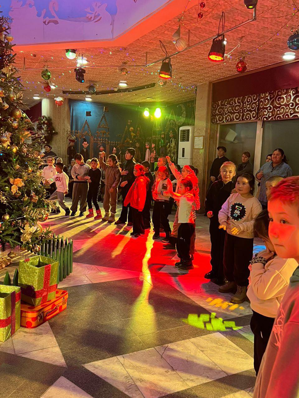 «Дети вместе с Дедом Морозом водили хороводы вокруг елки и активно участвовали в играх. Кроме шоу-программы, им показали спектакль «Новогодние приключения Актана и Акылай». Артисты подарили малышам праздничное настроение и веру в новогоднее чудо», — говорится в сообщении.