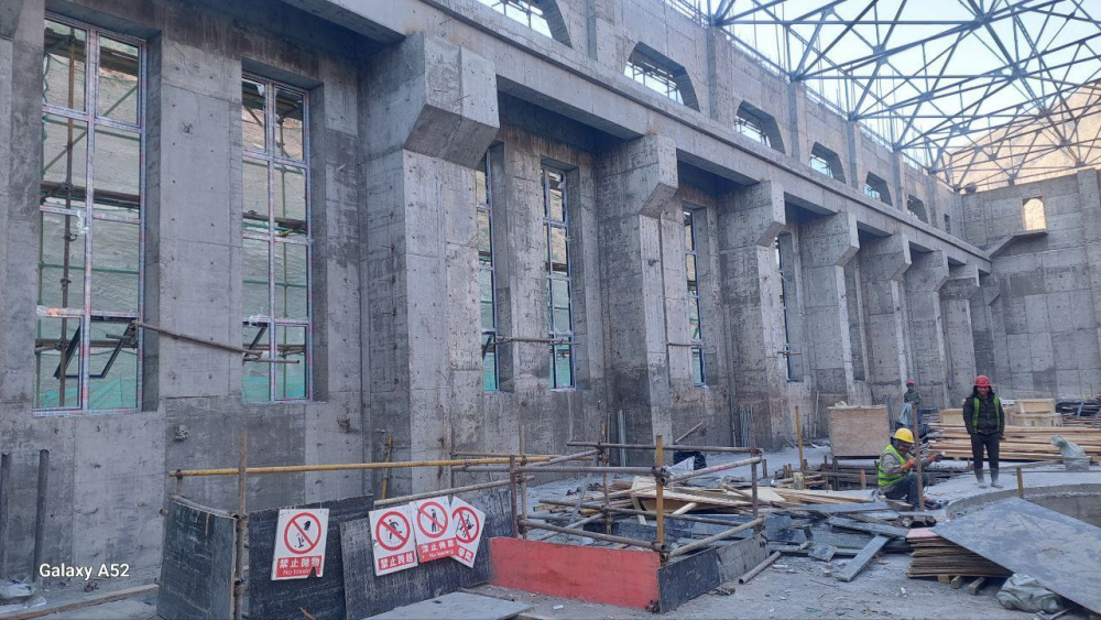 Здание самой гидроэлектростанции готово на 90 процентов. Уже установлены все три гидротурбины и дисковые затворы, смонтирован каркас крыши. В настоящее время ведутся кровельные работы и завершаются отдельные строительные этапы.