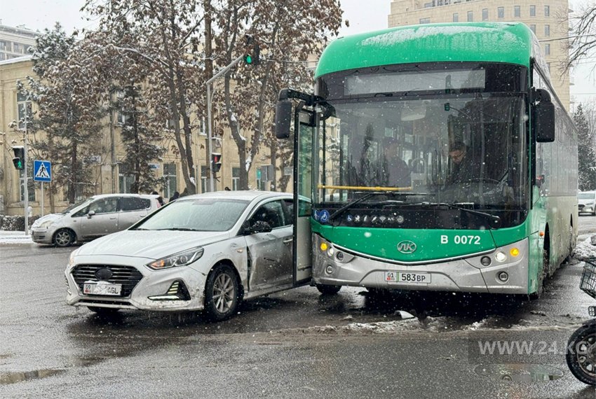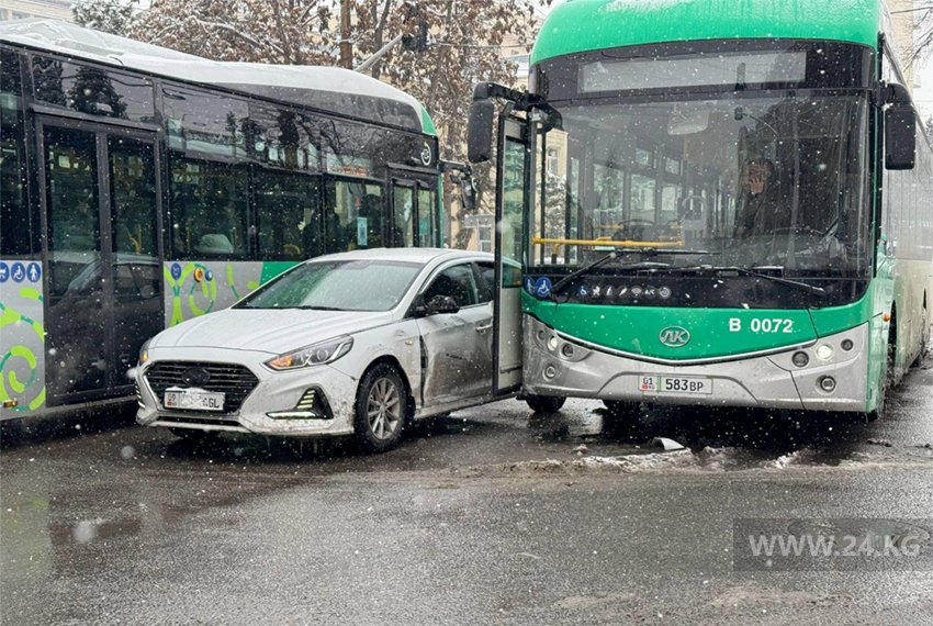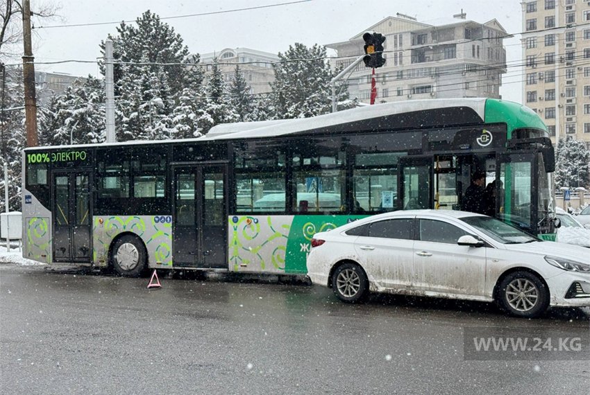 В центре Бишкека электробус столкнулся с легковушкой
