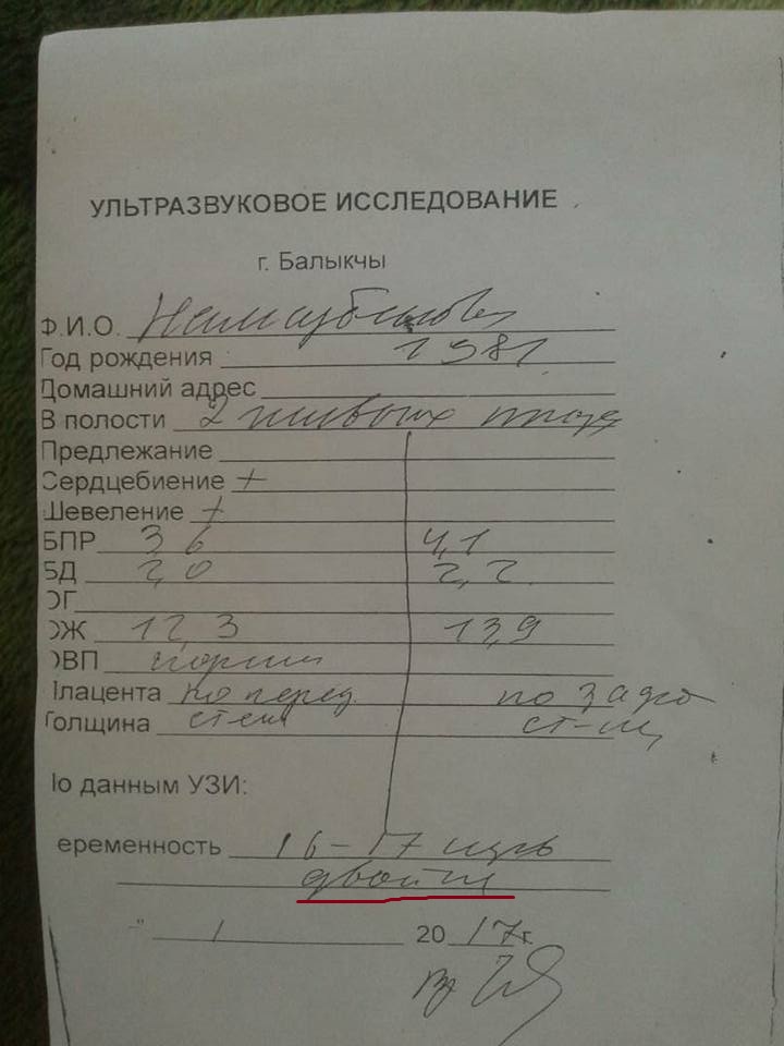 Сегодня родственник роженицы выложил копии нескольких ультразвуковых исследований. На всех документах специалисты пишут о двойне.