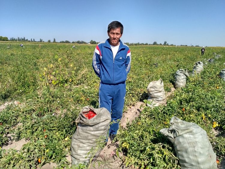 Недалеко от Бишкека, в Сокулукском районе на восточной окраине села Селекция, раскинулись обширные поля. Тут и там виднеются силуэты людей, которые словно плывут по этим полям в океане густой зелени. От палящего солнца их оберегают широкоплые шляпы или платки. Это женщины и подростки, собирающие помидоры. Руководит процессом Сульмане Леджеров, или просто Миша, как все его называют. «Он здесь самый главный», — и в шутку и всерьез говорят крестьяне. Журналист ИА «24-kg.com» провел с ними целый день, чтобы из первых уст узнать, как живется тем, кто целыми днями «пашет в поле».