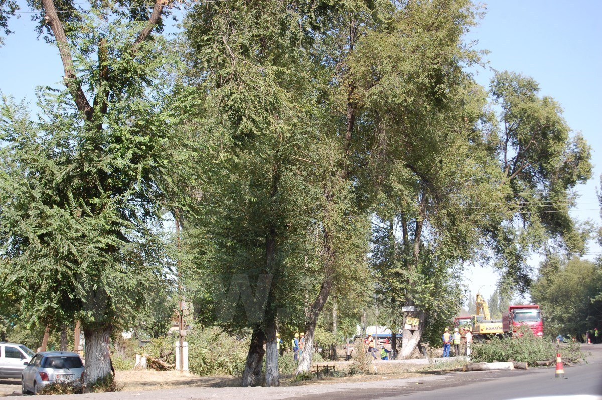 Подрядчик, выполняющий реконструкцию трассы Бишкек — Кара-Балта, начал вырубать деревья в Жайылском районе. Работы начались в селе Петропавловке.