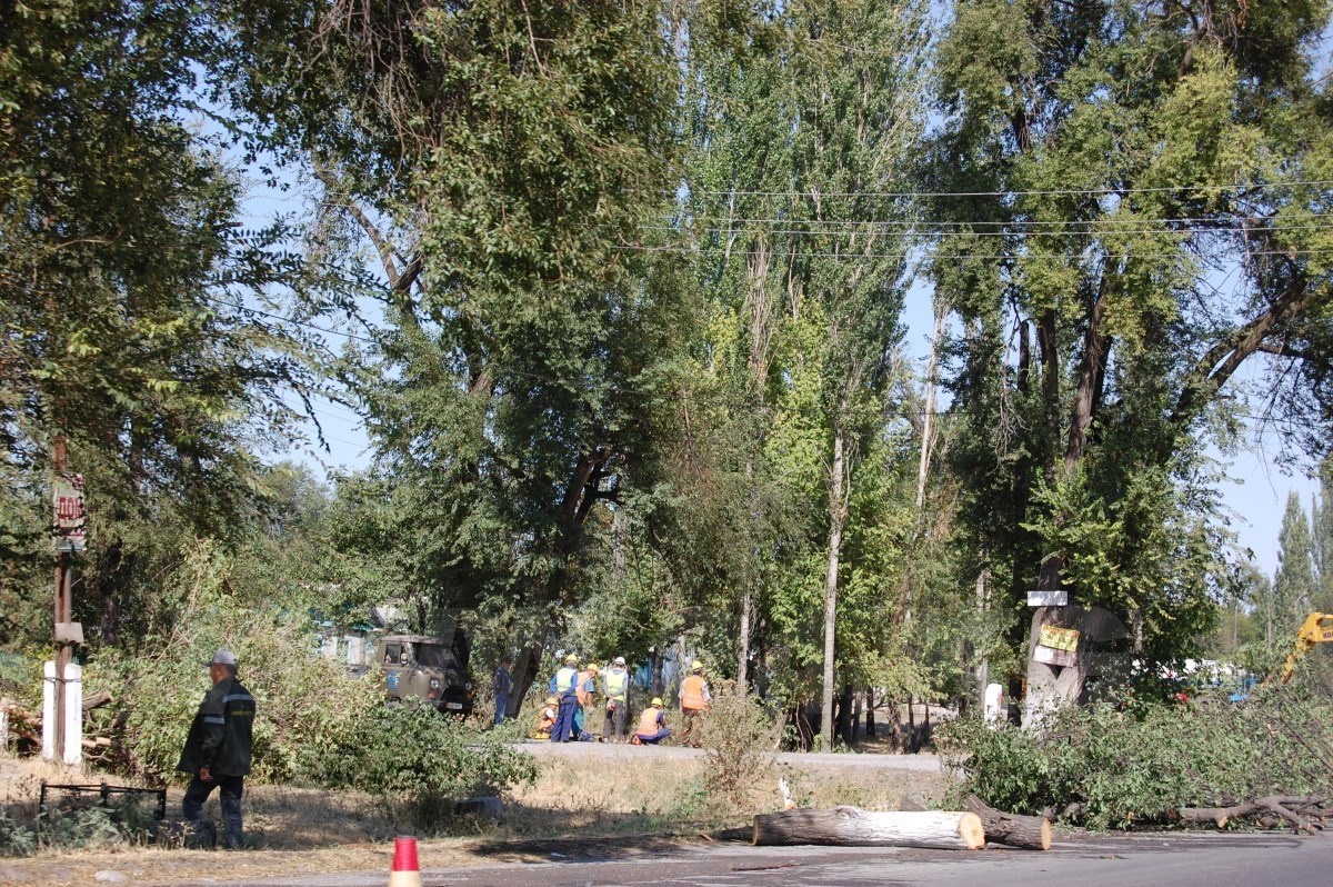 Уже вырубили деревья вдоль трассы на всей территории села. Работы продолжаются. При этом в начале района — селе Полтавке — деревья пока не рубят. Местные жители рассказали, что в рамках реконструкции дороги под снос подпадают и несколько остановок. Строители уже ометили их.