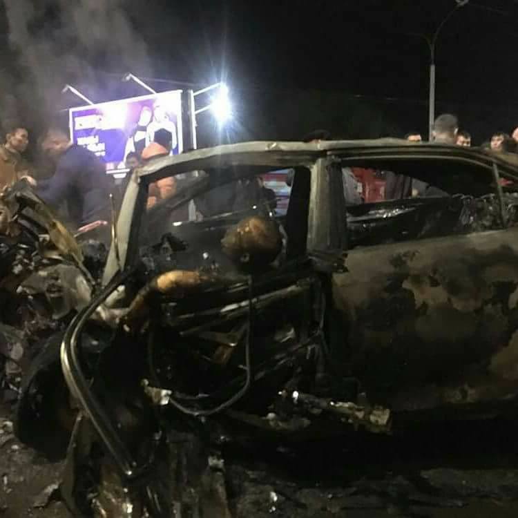 По предварительным данным, автомобиль марки «Тойота Камри» темного цвета задел машину марки «Тойота Витц», которая двигалась впереди. После столкновения «Тойота Камри» вылетела на встречную полосу движения, где в это время в противоположном направлении двигалась машина также марки «Тойота Камри» светлого цвета. Произошло еще одно столкновение, после чего первая «Тойота Камри» загорелась.