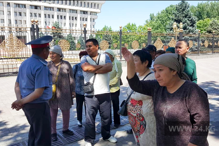 Около 20 человек требуют от депутатов Жогорку Кенеша помощи в решении вопроса компенсации за товар и восстановления рабочих мест.