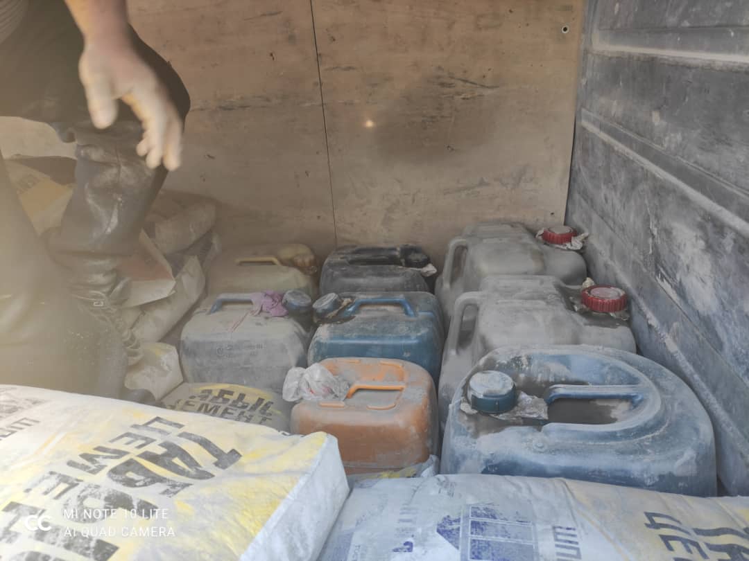 По ее данным, на КПП со стороны Казахстана прибыли два автомобиля «Мерседес-Спринтер» под управлением граждан Кыргызстана. В ходе досмотра пограничный наряд обнаружил канистры с ГСМ (бензин), которые спрятали под мешками с цементом.