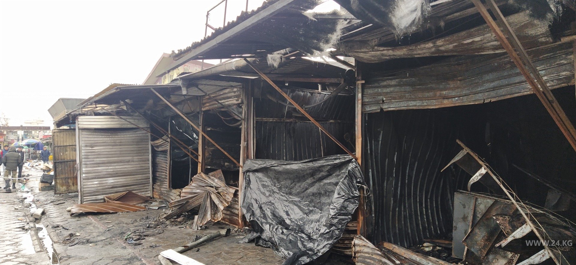 В Бишкеке на Орто-Сайском рынке продолжают ликвидировать последствия ночного пожара. На месте работают сотрудники милиции. Официальную версию происшествия пока не озвучивают. Приблизительная площадь возгорания — 1 тысяча 800 квадратных метров.