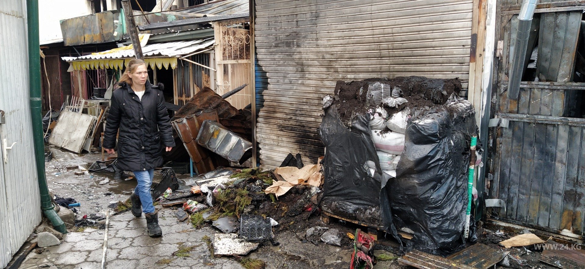«Ночью мне позвонил торговый агент, сказал, что в районе наших рядов что-то горит. Мы живем рядом. Быстро пришли. Здесь все горело. Все оцепили милиционеры и пожарные. Никого не подпускали. К нашим торговым точкам нас допустили лишь в пять часов утра, когда все потушили. У нас мелкооптовый магазин. Все сгорело дотла. Одних только продуктов на $20 тысяч», — говорит одна из пострадавших Эльмира Кочорова.