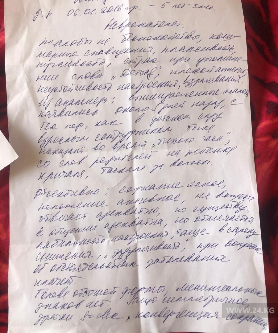 Потом она взяла телефон и начала им бить меня по голове, потом взяла опять шприц и сказала: «Если сейчас не закроешь свои глаза, я тебе сделаю в них уколы». Я напугалась и, закрыв глаза, лежала так, пока не закончится тихий час», — приводит рассказ ребенка Ассоль Молдокматова.