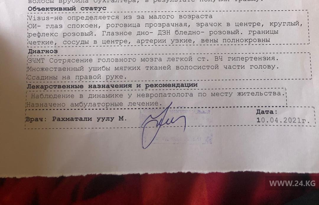 По ее словам, этот случай в частном детском саде неединичный. Десятки матерей рассказали, что их дети также подвергались избиению и унижению. Все подтверждающие вопиющие факты документы есть. Родители пострадавшей зафиксировали побои и обратились с заявлением в милицию. Всестороннего расследования и проверки деятельности детсада требует и Ассоль Молдокматова.