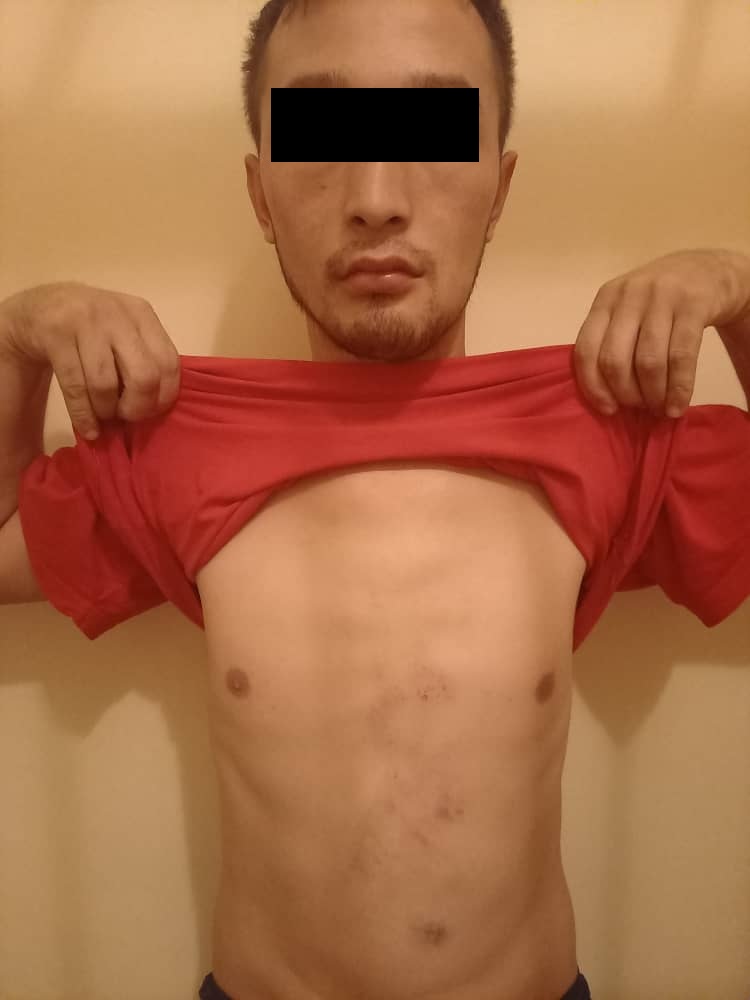 «На сегодня два факта применения пыток зарегистрированы прокуратурой в ЕРПП. 25 июня в милицию поступило заявление о развратных действиях со стороны якобы моего подзащитного. В этот день его доставили в ГОВД Токмака, где под пытками взяли признательные показания. Его привели к следователю, подозреваемый на допросе дал признательные показания. У. У. уулу отпустили, так как не было заключения экспертизы. Официально его задержали спустя месяц — 30 июля. Второй факт пыток был зарегистрирован 13 августа. У моего подзащитного есть следы побоев. Медицинское освидетельствование подтвердило, что У. У. уулу избили. У него сломаны два ребра, есть кровоподтеки. Сейчас следствие ведет УГКНБ Чуйской области», — сказала Асель Сабурканова.
