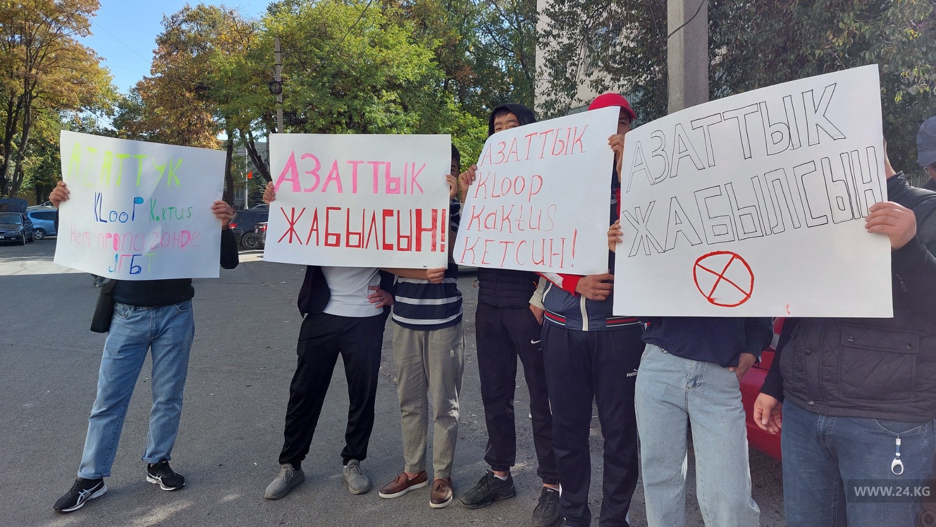 Участники требуют закрыть три издания: «Клооп», «Азаттык» и Kaktus.media и принять закон об иноагентах.