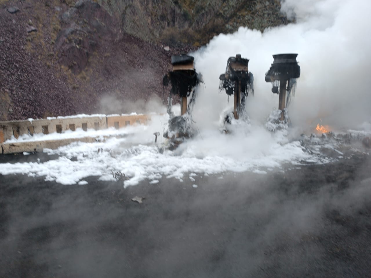 По его данным, поступила информация о возгорании большегруза с топливом примерно на 100-101-м километре трассы.