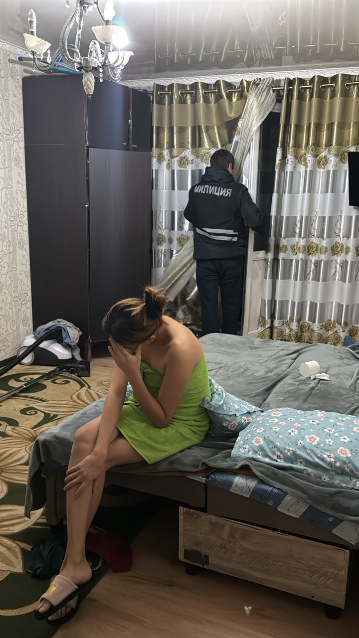 У второй проститутки в этот момент был клиент. Она сидела на кровати, укрывшись полотенцем, а клиент принимал душ. Правоохранители вызвали к квартире старшую по подъезду, которая, пользуясь моментом, начала жаловаться на шумных соседей, за дверями которых то и дело слышны стоны.