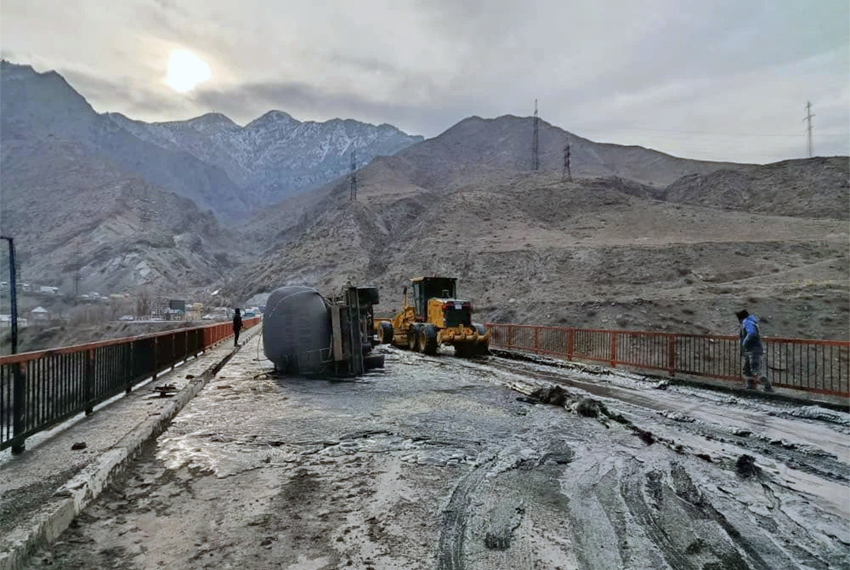 На дороге Бишкек — Ош перевернулся бензовоз с мазутом