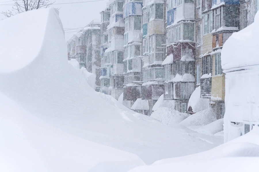 Местами сугробы поднялись до высоты четырехэтажных домов.