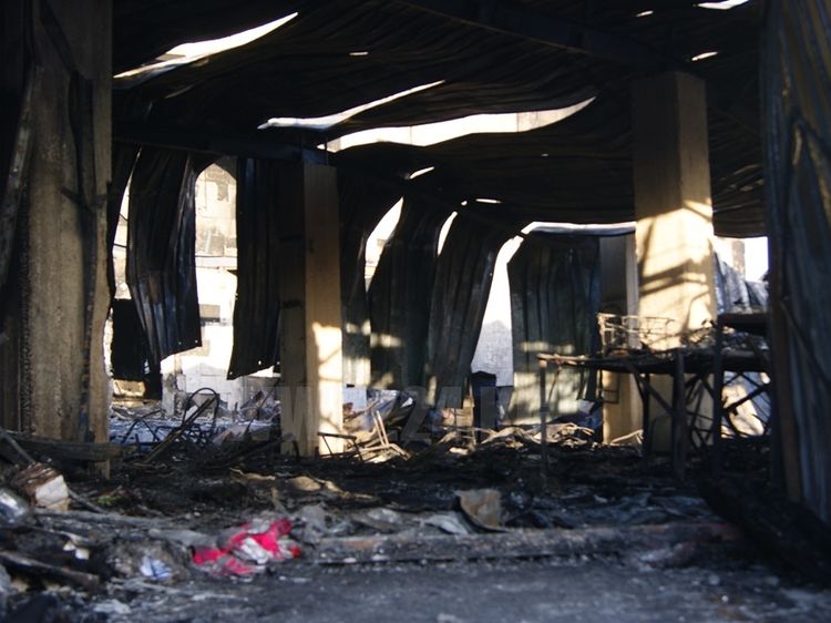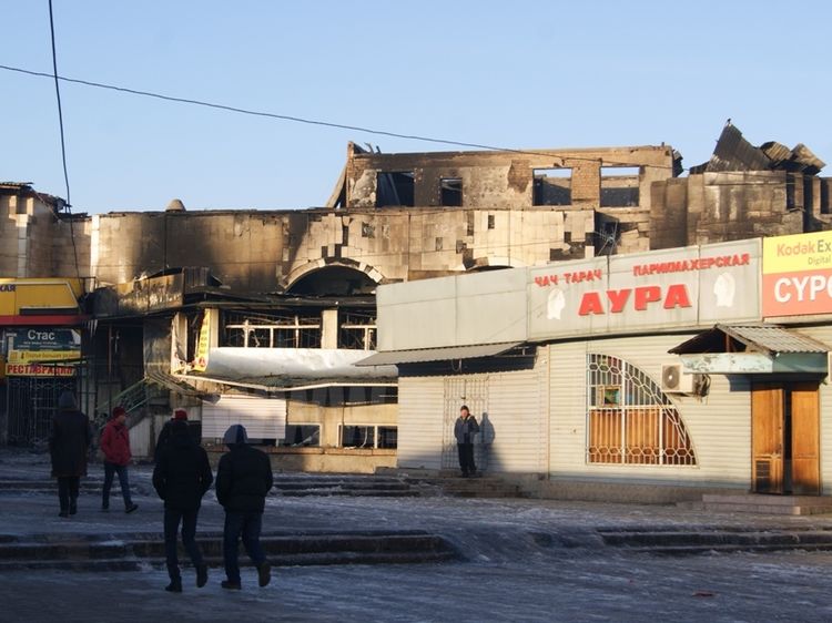 Буквально через месяц базар загорелся снова. Причем гореть начала территория совсем близко от того места, где произошел первый пожар. Загорелись торговые ряды на пересечении улиц Киевской и Бейшеналиевой. По предварительным данным, сгорела тысяча квадратных метров контейнеров.