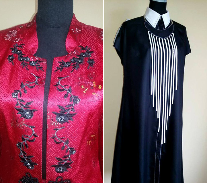 В модную палитру будут входить интенсивные тона красного вина, насыщенные оттенки синего. Сочетание вкусного оранжевого с другими яркими цветами. В рисунках тканей будут актуальны цветочные принты, яркая полоска, сочетание абстрактных, футуристических геометрических фигур. Все это символизирует веселый, задиристый характер петуха.