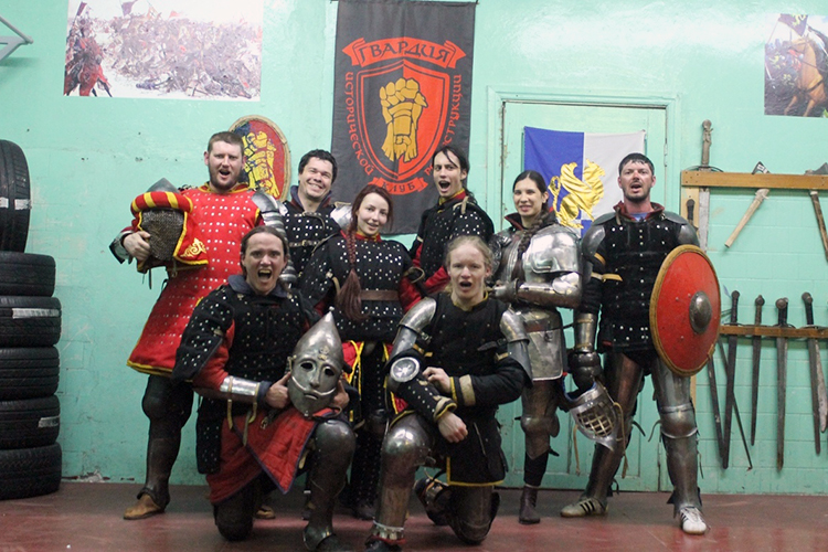 — Общефизическую подготовку, развитие ловкости, гибкости, кардионагрузки и фехтование. Особый упор делаем на укрепление спины. Доспехи тяжелые, и мало кто может сразу в них биться. Прежде чем их надеть, человек обычно готовится полгода. Занимаемся четырежды в неделю: три раза ИСБ и один — в тренажерном зале.