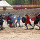 В массовых битвах правила другие. На ристалище бойцы выстраиваются в две шеренги. Впереди воины с щитами, сзади — с топорами и алебардами. Два войска бегут навстречу друг к другу. Цель — сбить противника с ног. Можно атаковать не только оружием, но и щитом, использовать борцовские приемы и даже пинаться.