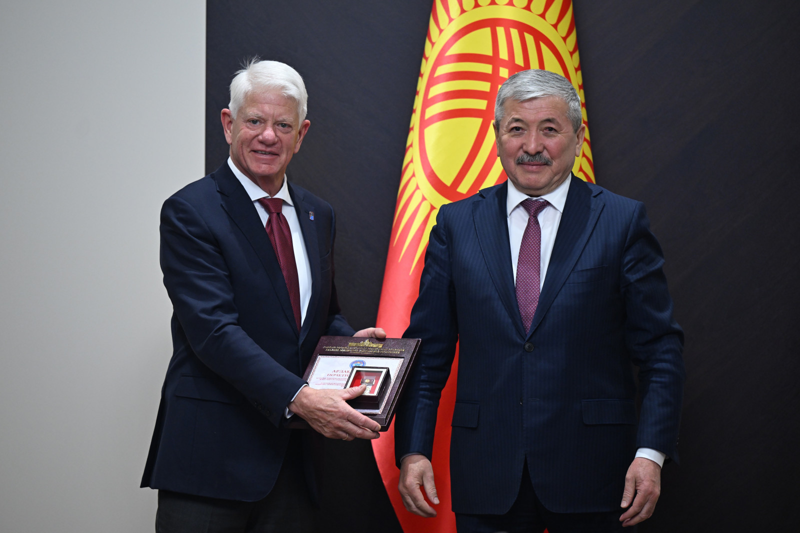 В завершение встречи за значительный вклад в развитие международного хоккея Франц Рейндль и Клифтон Роттесли награждены Почетными грамотами кабмина Кыргызской Республики.