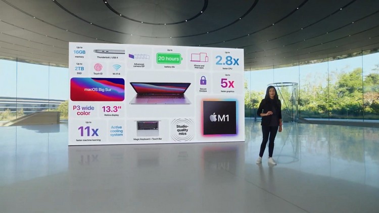 Первым компьютером на Apple M1 стал MacBook Air — самый доступный ноутбук в линейке Apple. Он не отличается внешне от модели с процессорами Intel, все изменения внутри. Компания обещает сравнимую производительность с предыдущими моделями, но с лучшей автономностью — он выдержит 18 часов просмотра видео или 15 часов в браузере.