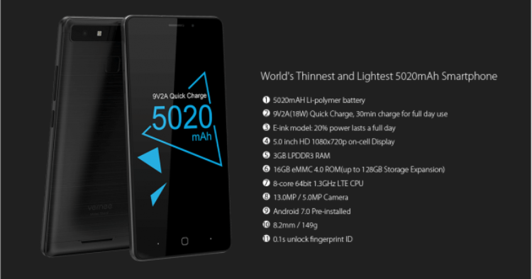 Смартфон Vernee Thor E лишен этого недостатка. Инженерам удалось вместить мощный аккумулятор емкостью 5020 мАч в довольно компактный корпус толщиной 8,2 миллиметра. При этом вес Thor E ничем не отличается от веса обычного смартфона и составляет всего 149 граммов.