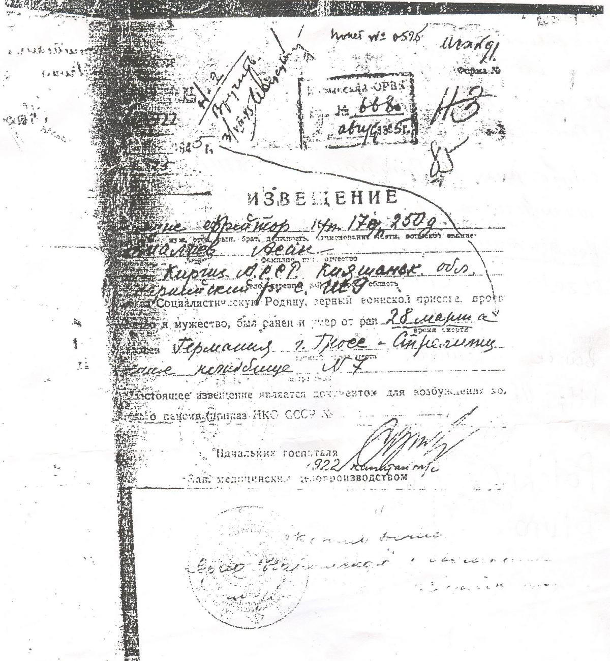 Точных данных о дяде у нашего собеседника нет. Но, опираясь на архивные данные, он предполагает, что при взятии Блюмберга фронтовик получил сильное ранение и умер.