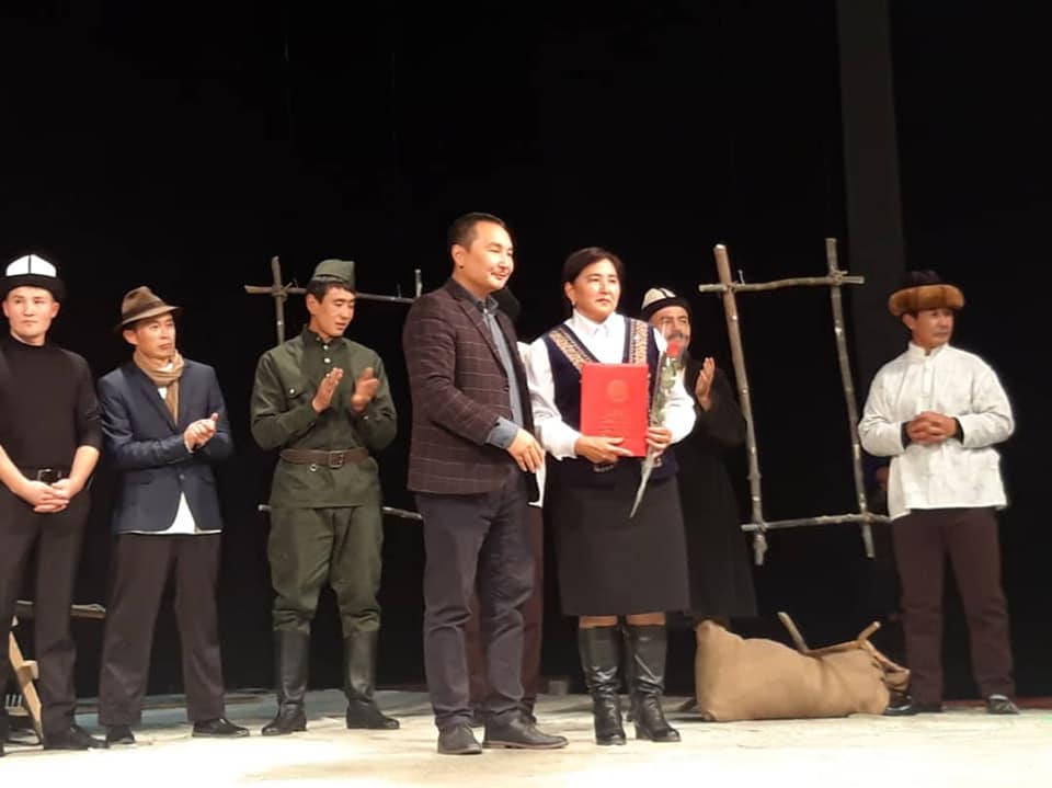 По завершении спектакля глава области Айбек Бусурманкулов вручил работникам культуры почетные грамоты и благодарственные письма от имени указанного театра и представительства правительства в Таласской области.