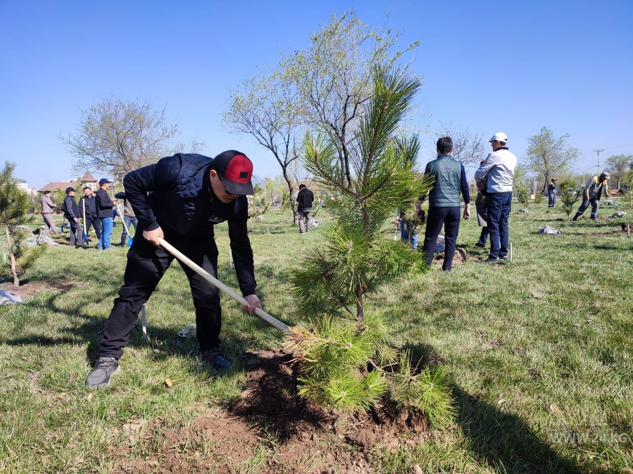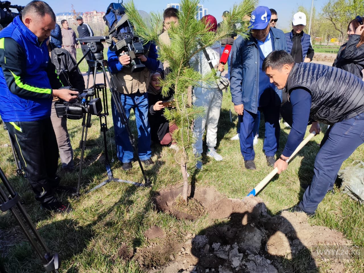 Высадив саженцы в парке «Ынтымак», участники акции выехали в село Байтик Чуйской области, чтобы продолжить ее там. Всего будет высажено 400 деревьев — по 200 в столице и области.
