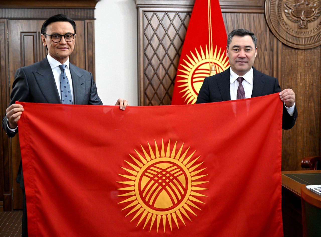 В завершение Садыр Жапаров вручил флаг Кыргызстана Эдуарду Кубатову и пожелал успехов в покорении вершин.