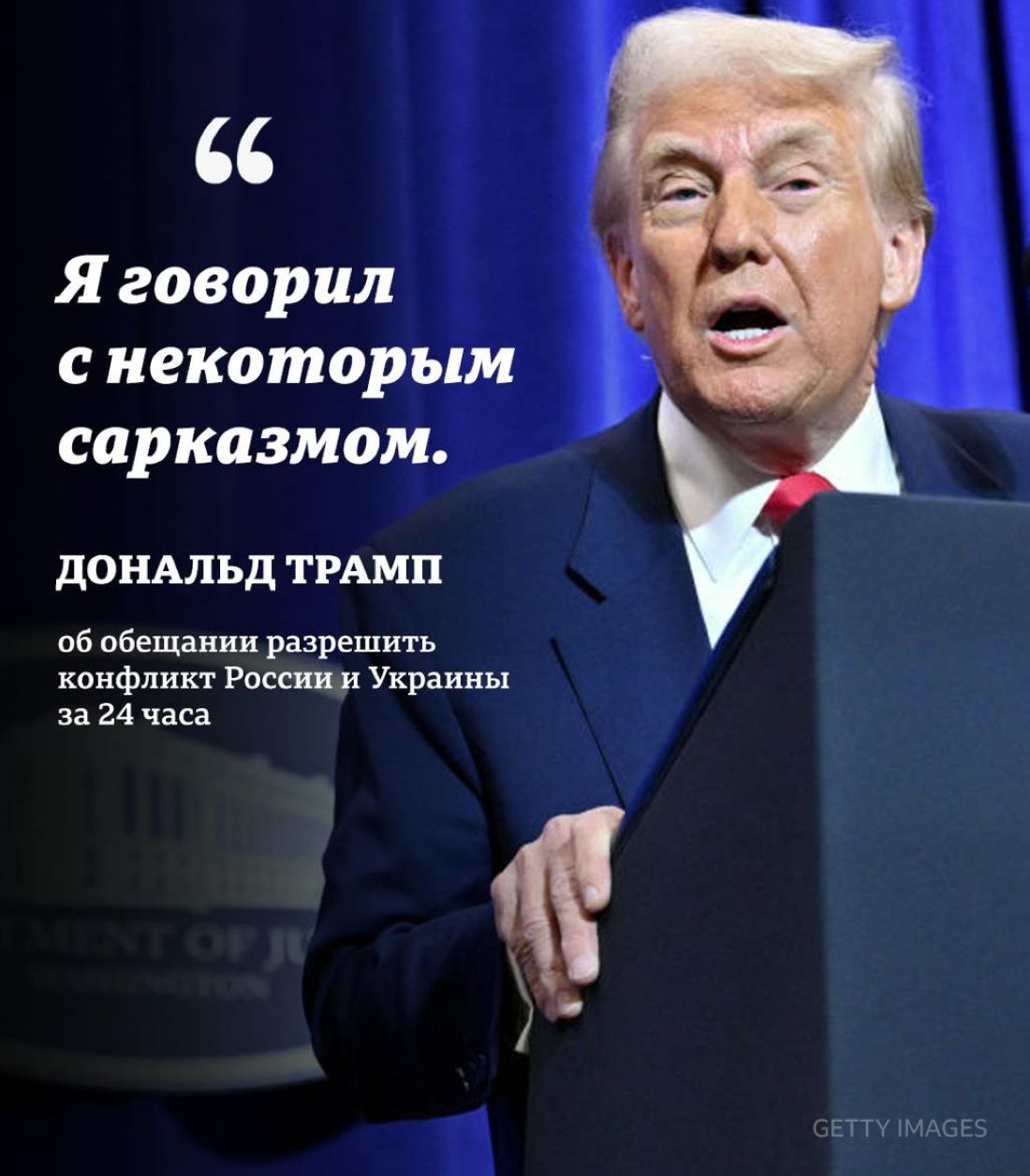 Дональд Трамп назвал «сарказмом» свое обещание завершить войну в Украине за 24 часа. По его мнению, переговоры о перемирии «идут хорошо».