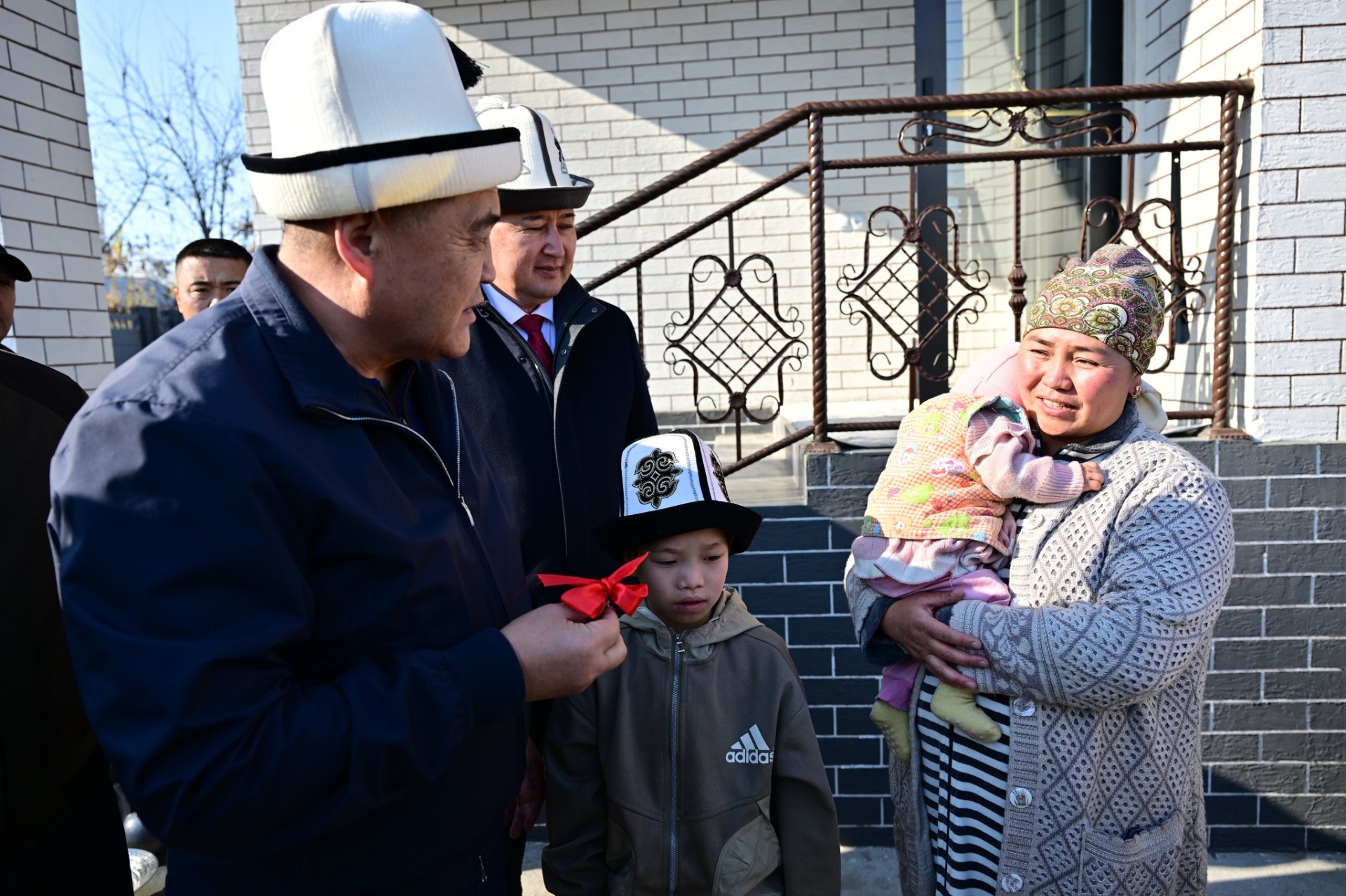 Первый дом получила жительница села Кызы-Сенир Марапат Тагаева — мать-одиночка, воспитывающая двоих сыновей с инвалидностью. Новый дом построен за счет сына Камчыбека Ташиева Тай-Мураса Ташиева.