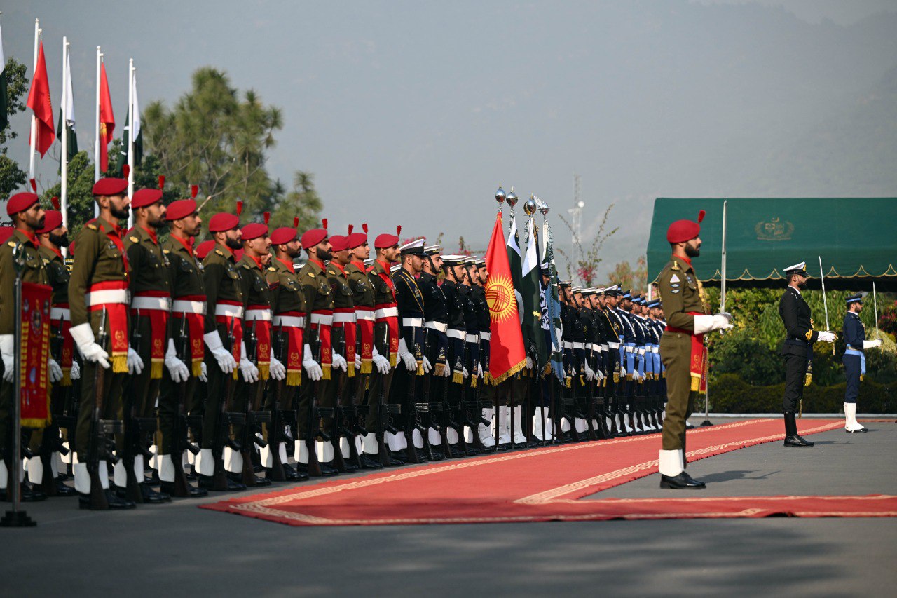 Главу государства встретил премьер-министр Шахбаз Шариф. После взаимных приветствий военный оркестр исполнил государственные гимны Кыргызстана и Пакистана.