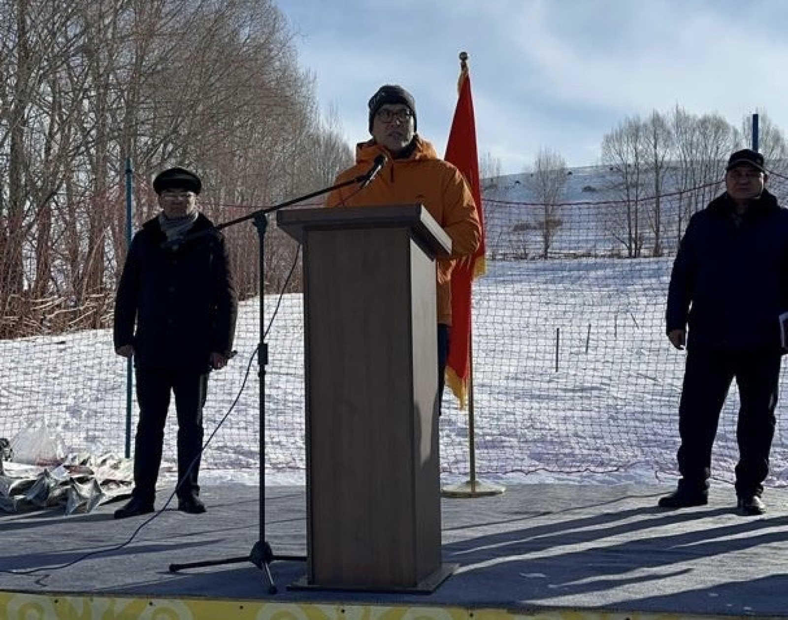 В церемонии открытия принял участие заместитель председателя кабинета министров Эдиль Байсалов. Выступая перед участниками мероприятия, он подчеркнул стратегическую значимость создания лыжной школы для системной подготовки детей и подростков, популяризации здорового образа жизни и формирования кадрового потенциала в сфере зимних видов спорта.