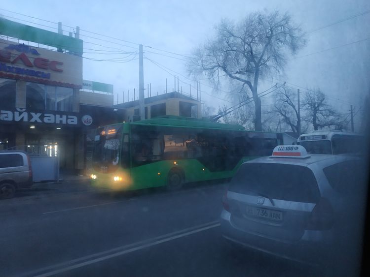 В Бишкеке на проспекте Чуй стоят троллейбусы, из-за чего возле Ошского рынка образовалась пробка. Об этом 24-kg.com сообщил читатель.