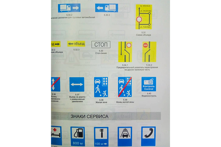 В Правилах дорожного движения Кыргызстана указано, что на знаке допускается надпись «Контроль», но не указано, на каком языке. На самом же знаке продублировано Control.