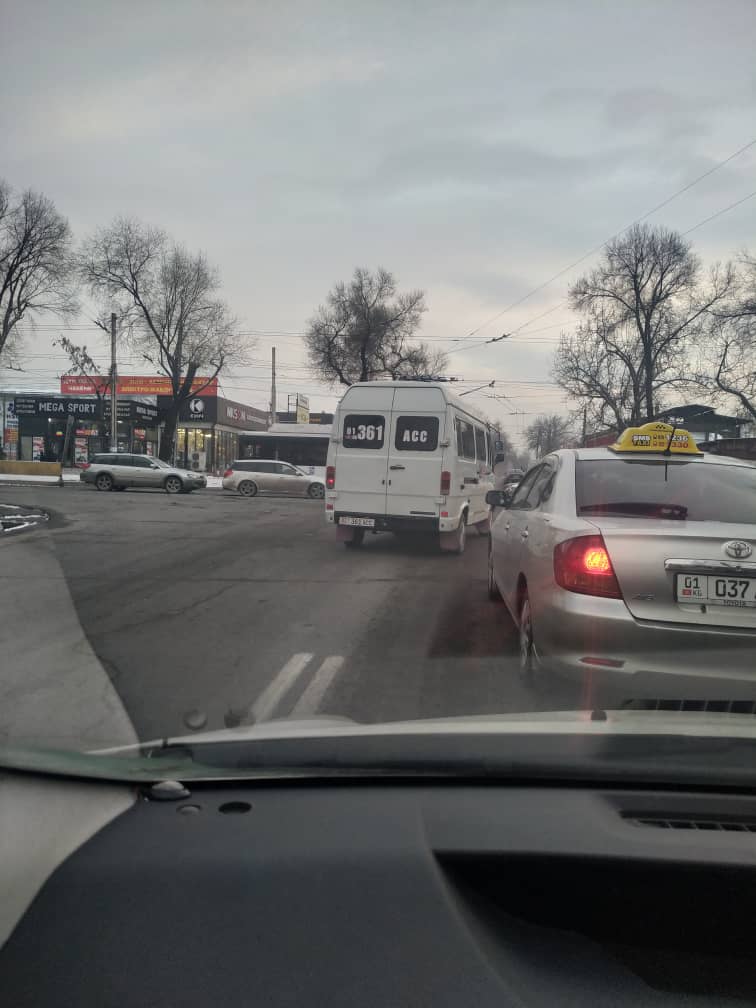 Водитель микроавтобуса маршрута № 260 на перекрестке улиц Толстого и Асаналиева выехал на полосу встречного движения. Об этом 24-kg.com сообщил читатель.