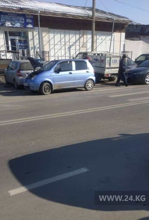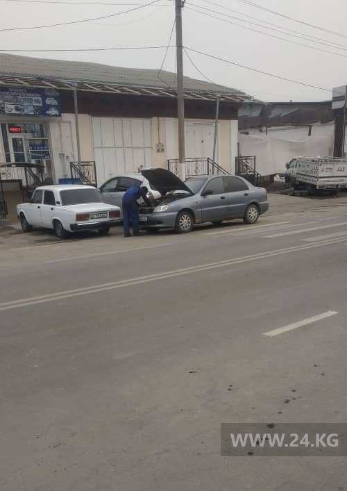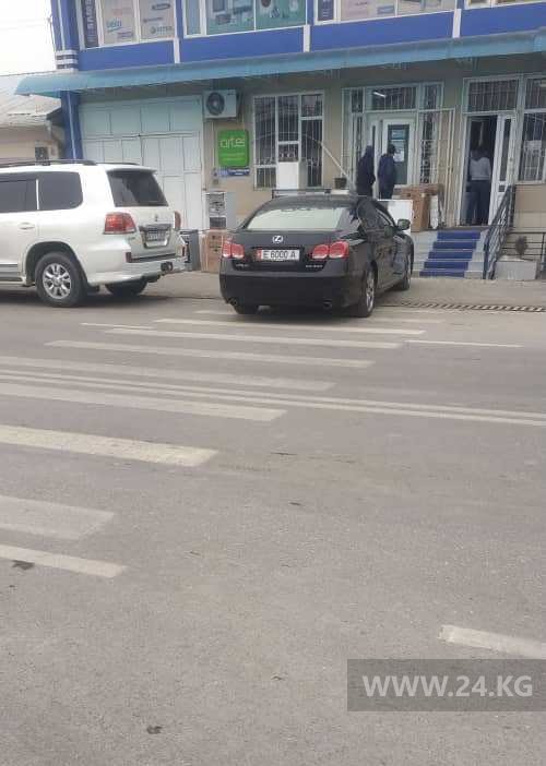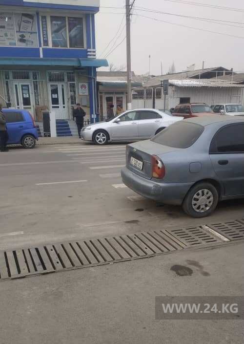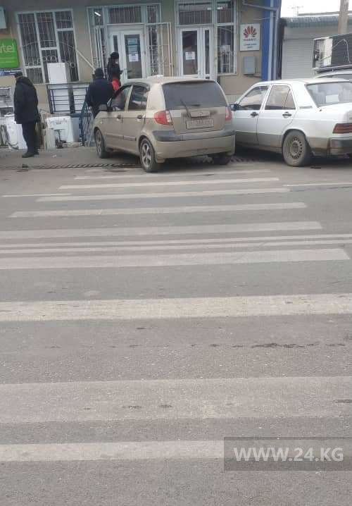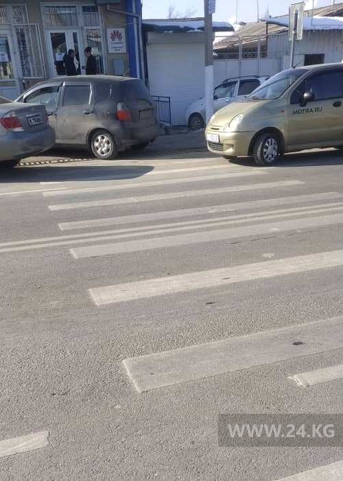 На перекрестке улиц Орозбекова и Токтогула авто также стояло на пешеходном переходе.