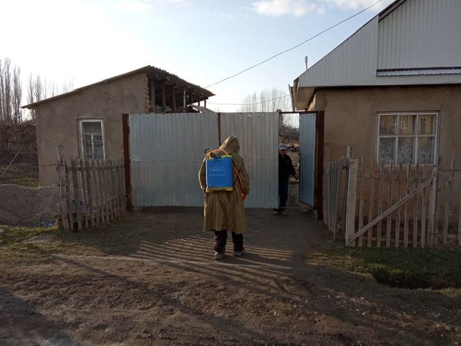 У местных жителей те же проблемы, что и во всем Кыргызстане, но жалоб от них приходит не много. Зато читатель 24-kg.com прислал видео, как граждане проводят дезинфекцию улиц. Видео снято в селе Доболу.