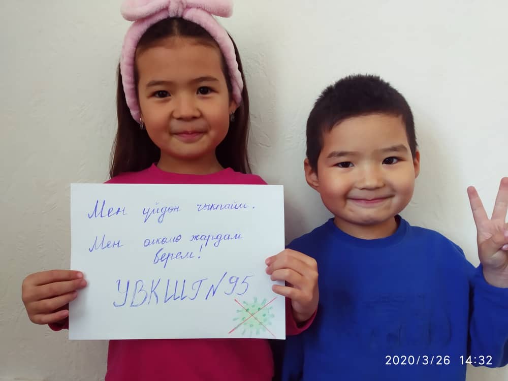 В Бишкеке ученики одной из школ запустили флешмоб «Я сижу дома». Об этом 24-kg.com сообщил читатель.