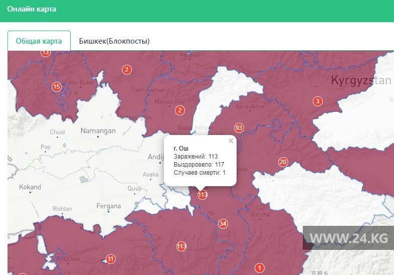 Согласно данным Республиканского штаба по борьбе с COVID-19, всего в Ошской области зарегистрировали 282 случая коронавируса, а в Джалал-Абадской — 129.