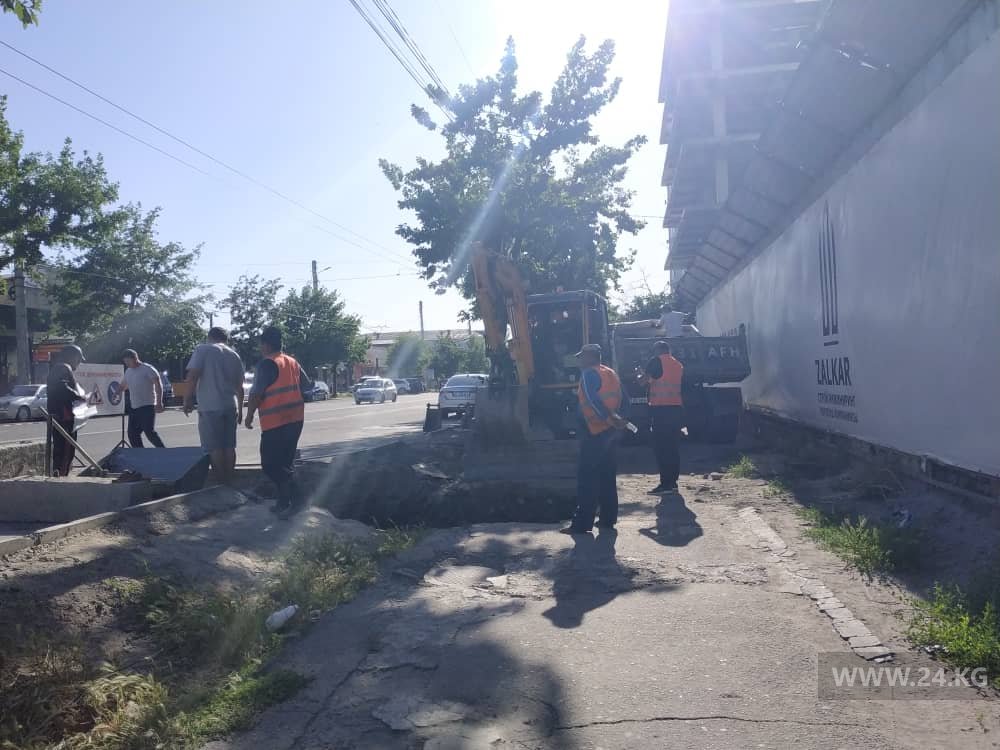 На улице Ахунбаева строительная техника полностью закрыла проход. Людям приходилось идти на проезжую часть, чтобы обойти ее.