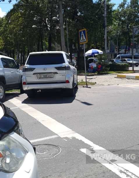 Этот белый «Лексус» постоянно паркуют на перекрестке улицы Токтогула и проспекта Манаса.