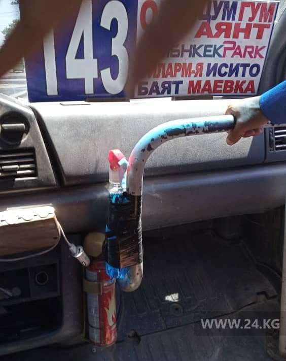 Жидкость для мытья стекол вместо антисептика предлагает водитель буса маршрута № 143 в Бишкеке. Фото 24-kg.com прислала читательница.