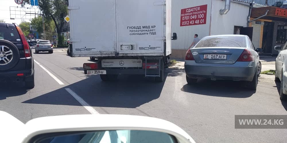 На перекрестке улиц Киевской и Тоголока Молдо стоял грузовик, также заняв полосу.