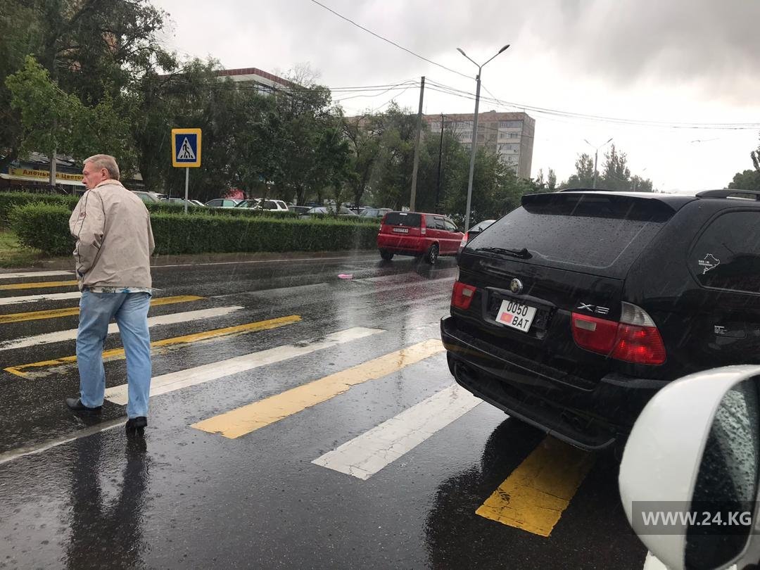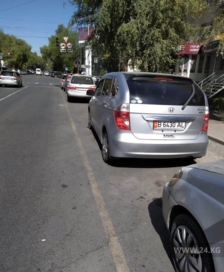 Это авто стояло на пешеходном переходе на улице Жукеева-Пудовкина напротив Орто-Сайского рынка.