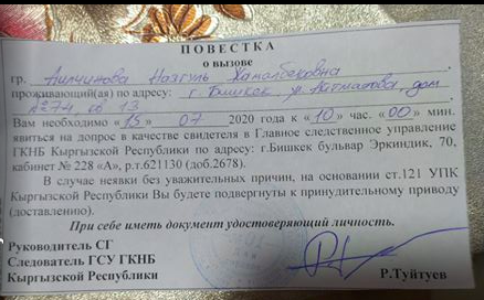 Девушку вызвали на допрос в качестве свидетеля. «Уже вышла, все нормально. Ребята из ГКНБ вежливые и симпатичные. Еду домой и буду спать», — пишет Назгуль Алымкулова.